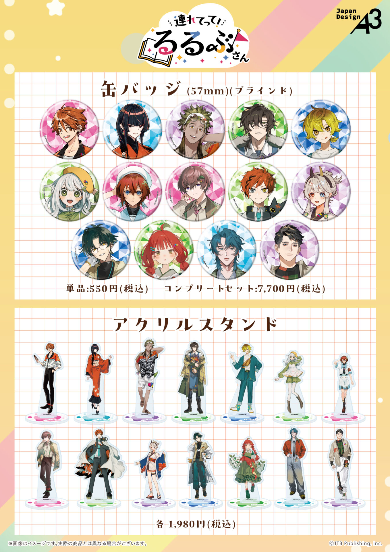「るるぶさん」たちの全身姿を堪能できるアクリルスタンドは、縦横最大15cm。公式イラストの細かいディティールを改めて見ることができます。