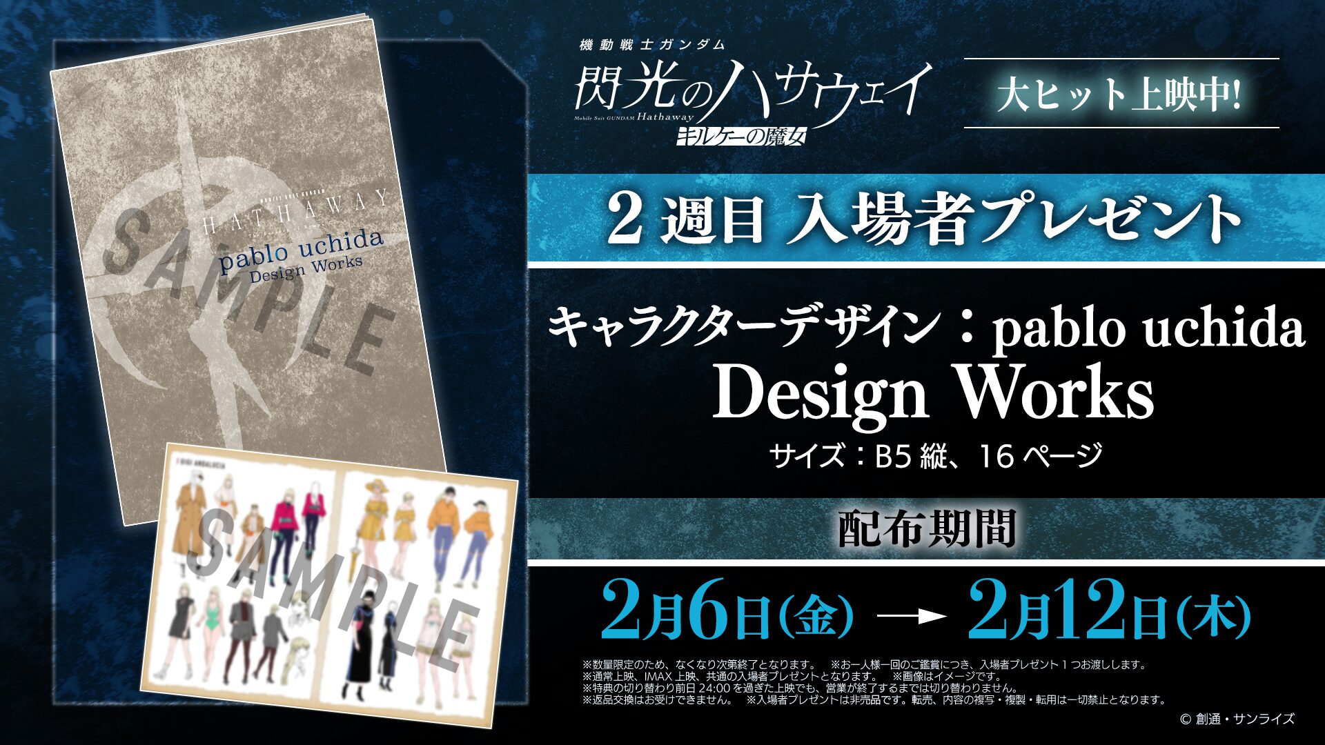 1月30日(金)から公開中、初週末の興行収入が8.4億円を突破した映画『機動戦士ガンダム 閃光のハサウェイ キルケーの魔女』。その2週目入場者特典が、設定原案資料集「pablo uchida Design Works」に決定したことが明らかになりました。