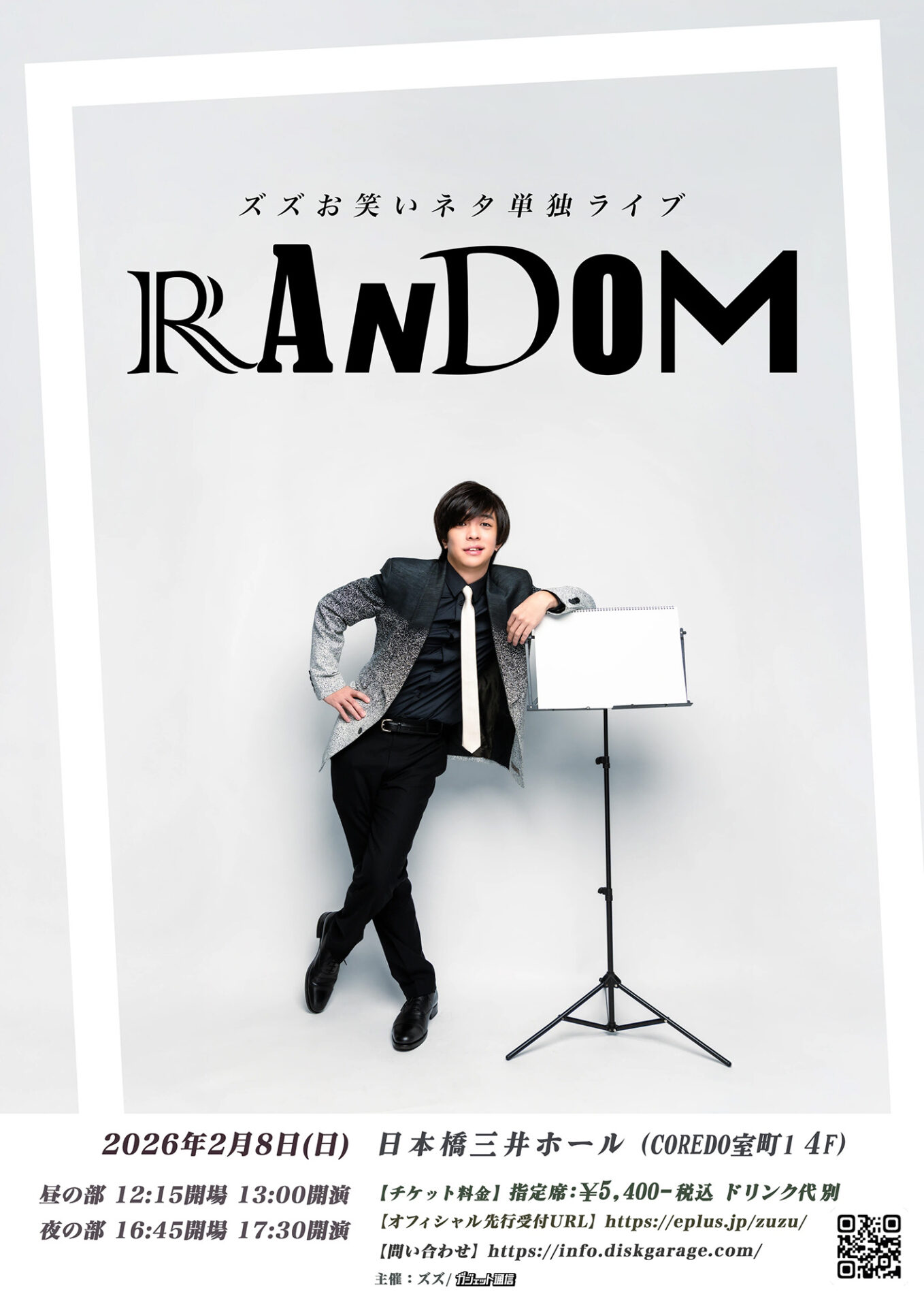 株式会社REJECTが運営するeスポーツチーム「REJECT」所属のストリーマー・ズズさんによるワンマンライブ「ズズ お笑いネタ単独ライブ “RANDOM”」が、2026年2月8日(日)に日本橋三井ホールで開催されます。
