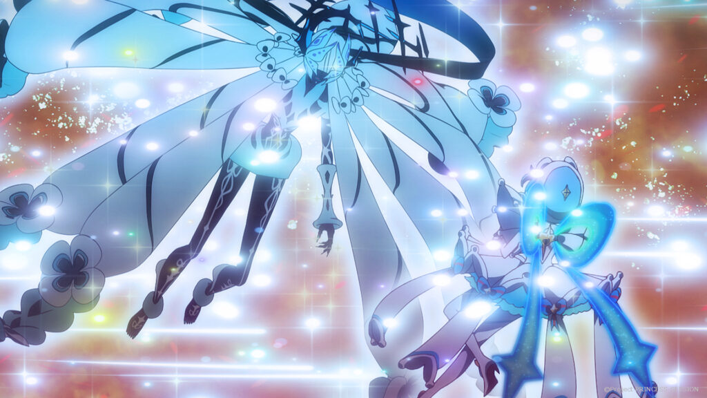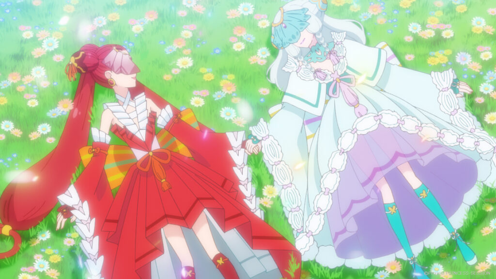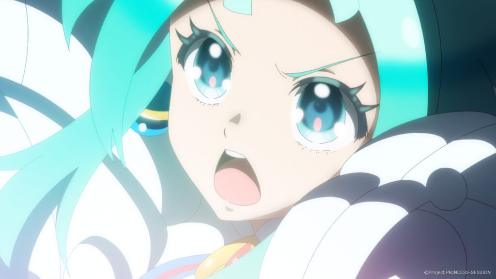 新たなる姿を得たプリンセスたちは、⽩の⼥王との決戦に挑みます。しかし⽩の⼥王の全⼒は、それすらも凌駕する勢いでした。プリフェス会場では、みんなが必死にジャマスナークを⾷い⽌めています。プリンセスたちに頼る事なく、⾃分たちだけの⼒で。