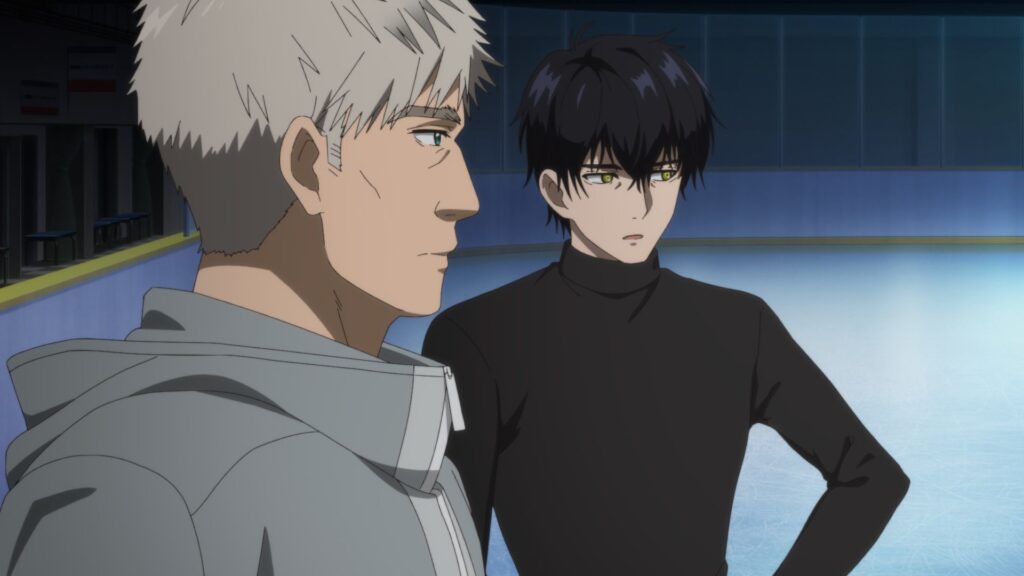 鴗鳥慎一郎の自宅で夜鷹純と鉢合わせた司。さらにスケートリンクにも誘われ、その思いがけない状況に動揺してしまう。だが、目の前で滑る夜鷹の姿に刺激された司は、彼のジャンプを真似して必死で学ぼうとする。