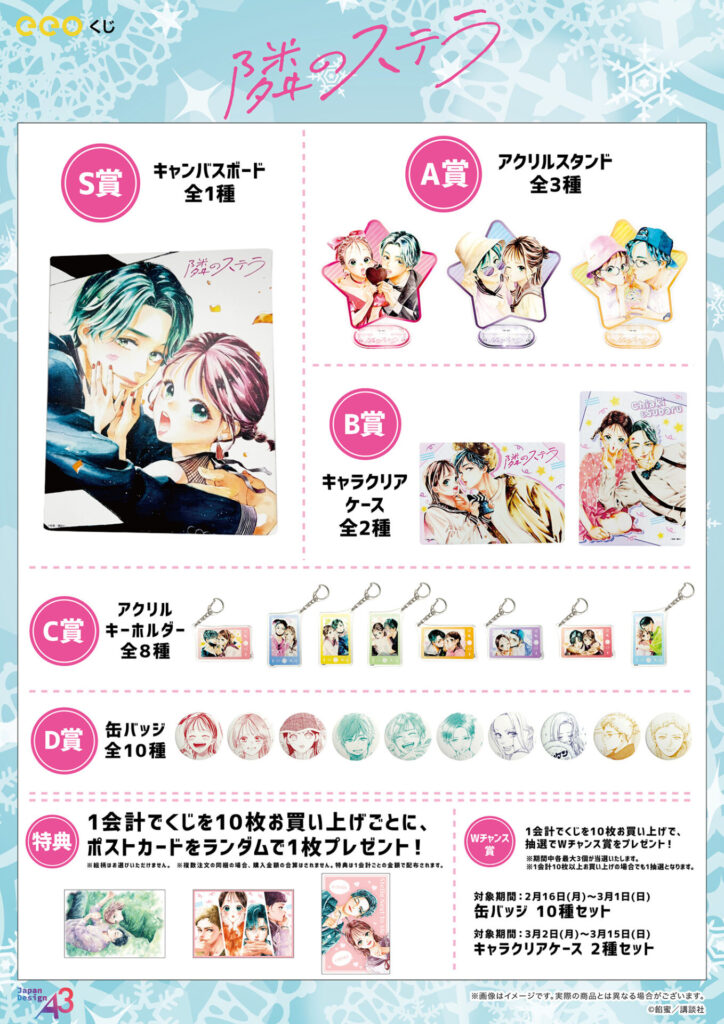 「別冊フレンド」(講談社)で連載中、餡蜜先生が手掛ける『隣のステラ』のオンラインくじ「eeoくじ」が、2月16日(月)より通販サイト「eeo Store online」にて販売スタートしました!