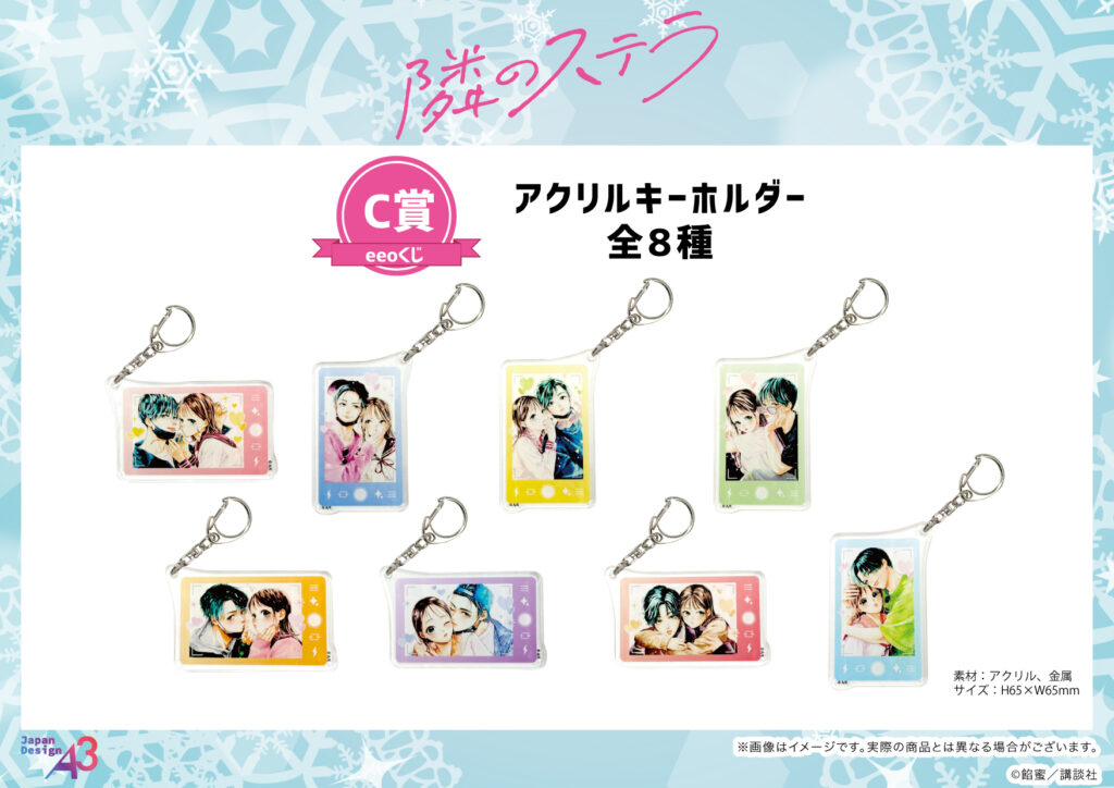 C賞には、コミックスの表紙イラストを使用した、およそ6.5cmのアクリルキーホルダーが登場。