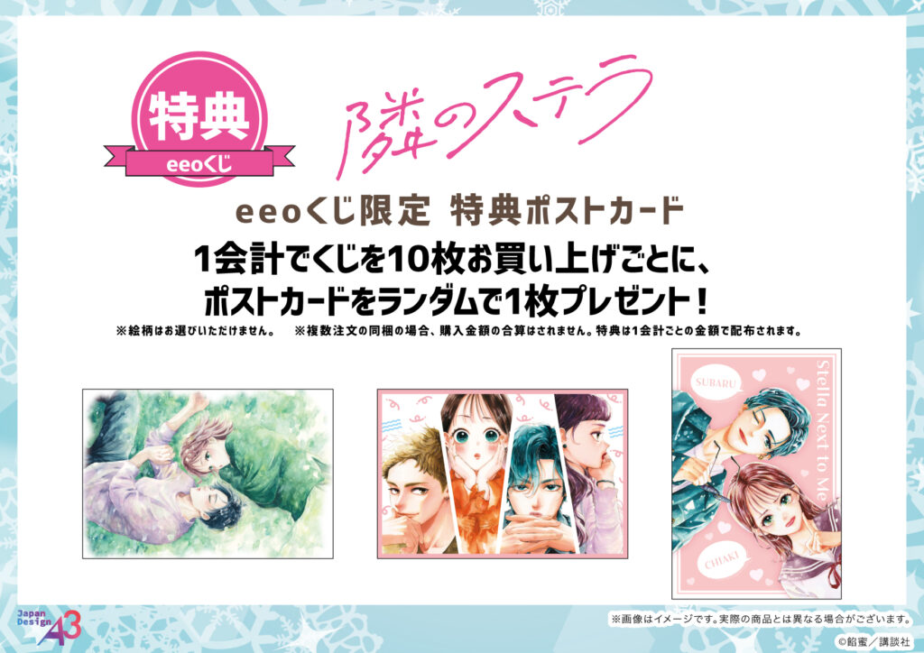 『隣のステラ』の「eeoくじ」を1会計で10枚ご購入ごとに、ポストカード(全3種)をランダムで1枚プレゼント!