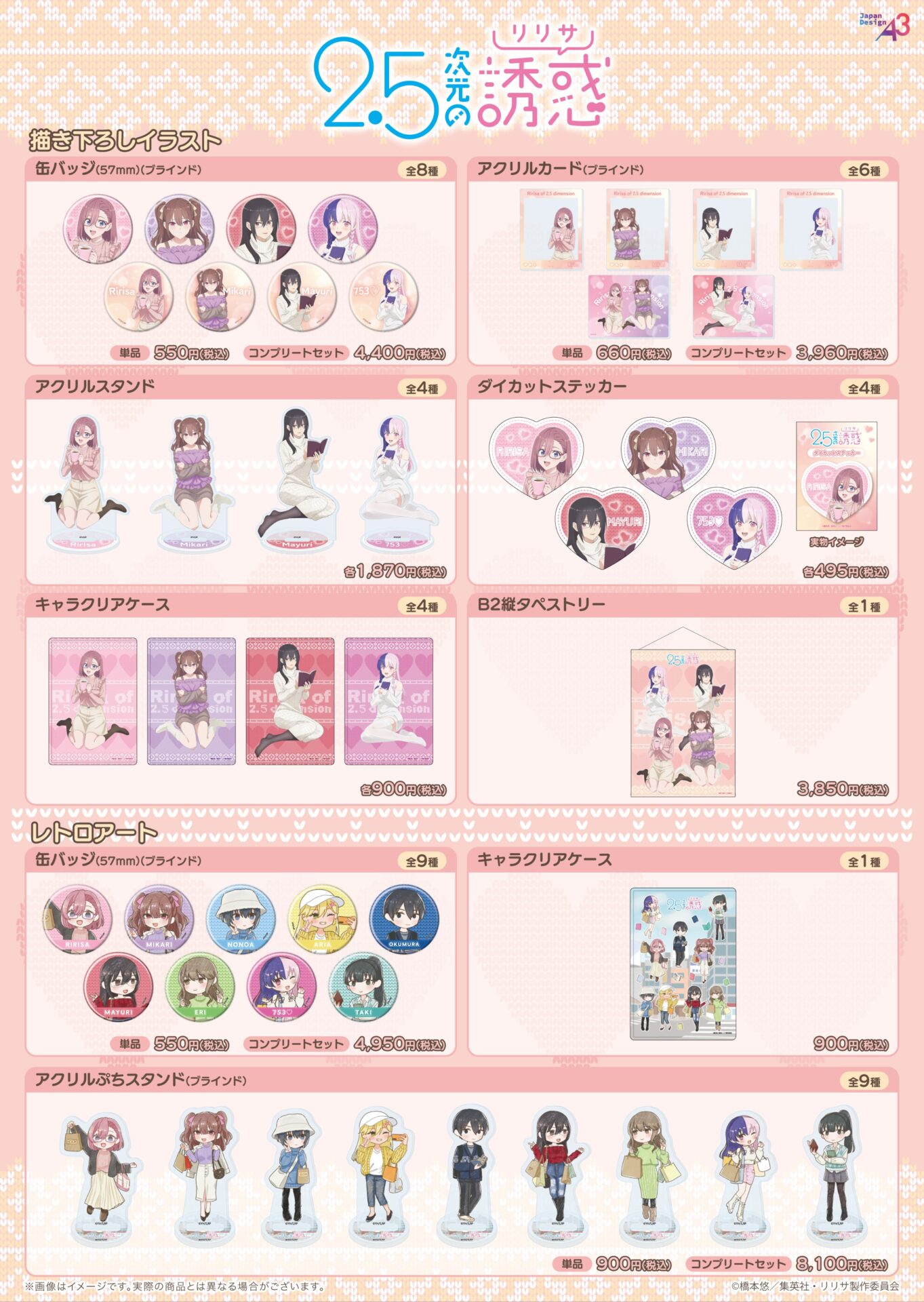 TVアニメ『2.5次元の誘惑』より、【お部屋ニット】をテーマにした描き下ろし&【おでかけニットコーデ】をイメージしたレトロアートイラストを使用した新作グッズが3月2日(月)よりeeo Store onlineにてお取り扱いスタートです!