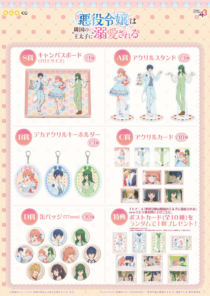 2026年1月から放送中のTVアニメ『悪役令嬢は隣国の王太子に溺愛される』より、オンラインくじ「eeoくじ」が登場! 2026年3月26日(木)まで、通販サイト「eeo Store online」にて期間限定で販売中です。