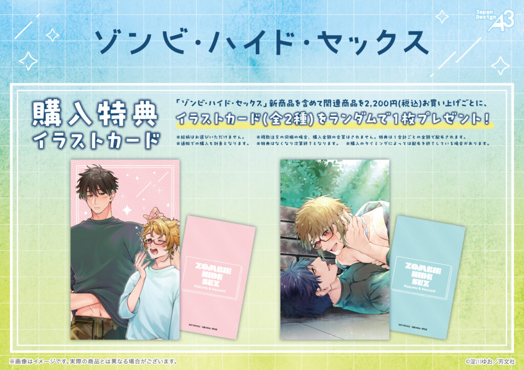 『ゾンビ・ハイド・セックス』新商品を含めて関連商品を1会計2,200円(税込)お買い上げごとに、購入特典としてイラストカード(全2種)をランダムで1枚プレゼント。