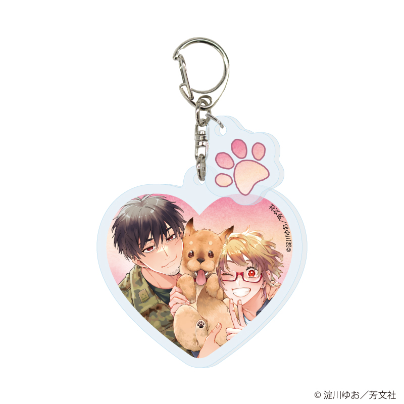カバンやお部屋をキュートに彩る、ミニパーツが付いたハート型のキーホルダー。晴臣くんの愛犬・晴太を抱っこして頬を寄せ合う姿に、思わずほっこり癒されます♪