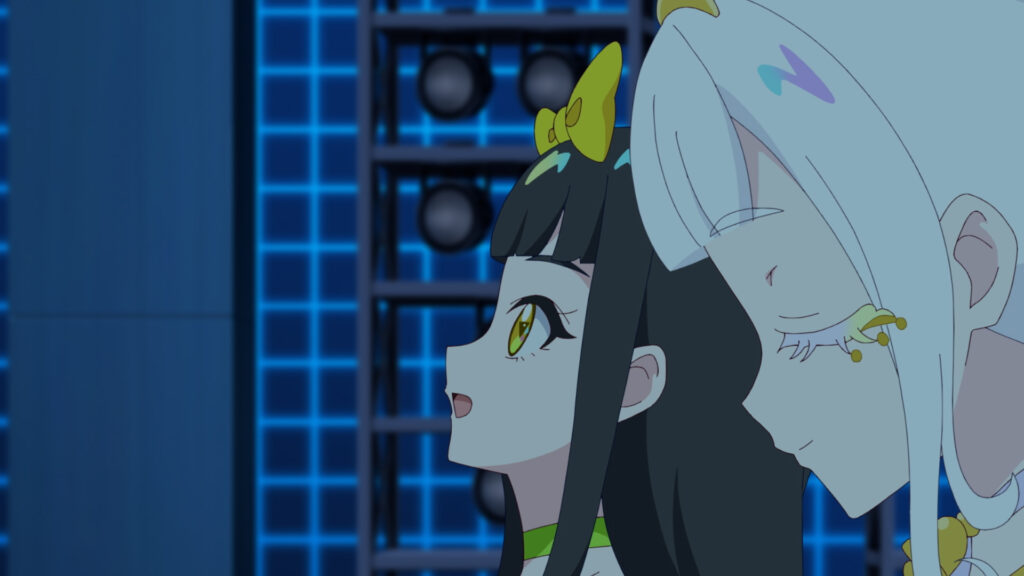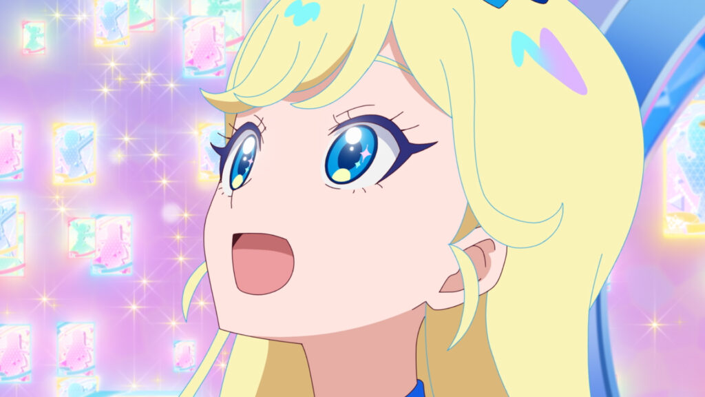 最高潮の盛り上がりを見せるファイナル・アイプリコンテスト。次に歌うのはルミナスフローラ。リング姫とつむぎの2人は、プリトモたちの大声援に勇気を貰うのだった。そして最後に登場するのは、みつきとひまりのポッピンドリーミン。たとえ別々の道を歩いても、2人の未来は重なっていると信じて歌を届けるみつきとひまり。こうして、6組全てのライブが終了。いよいよ優勝チームが発表される。エターナルアイプリの称号を手にするのは果たして……⁉
