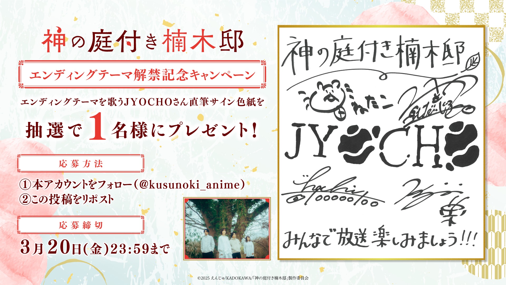 EDテーマ解禁を記念して、JYOCHOの直筆サイン色紙プレゼントキャンペーンが開催中です。