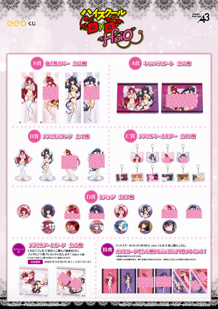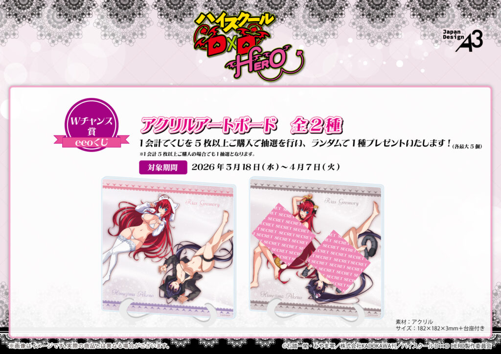 TVアニメ『ハイスクールD×D HERO』のオンラインくじが「eeoくじ」で、2026年3月18日(水)より好評発売中です!