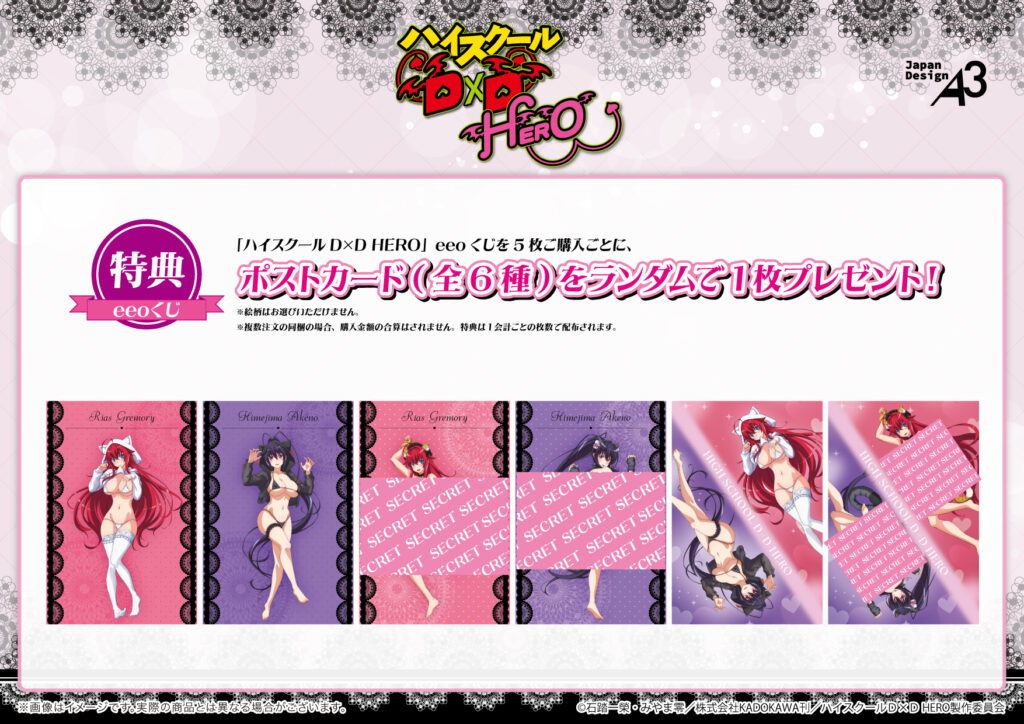 TVアニメ『ハイスクールD×D HERO』の「eeoくじ」を1会計で5枚ご購入ごとに、ポストカード(全6種)をランダムで1枚プレゼント!