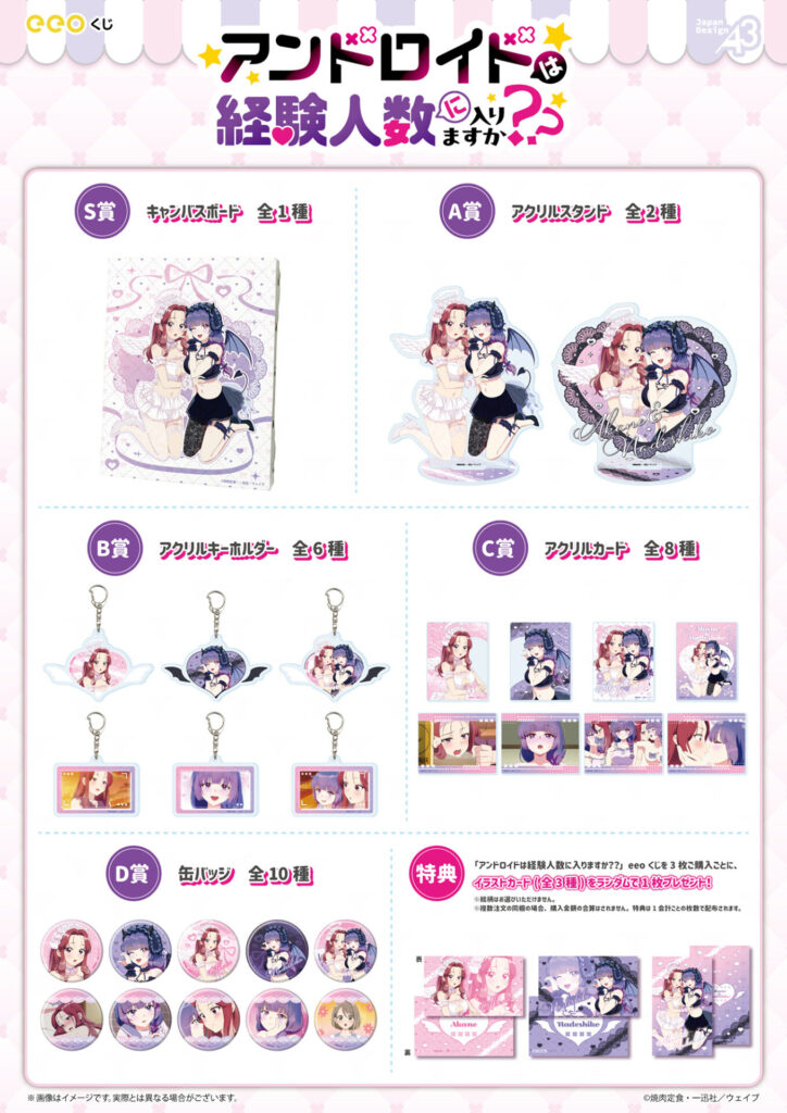 2026年1月よりTVアニメが放送中の『アンドロイドは経験人数に入りますか??』。同作のオンラインくじ「eeoくじ」が、2026年4月5日(日)まで通販サイト「eeo Store online」にて発売中です!