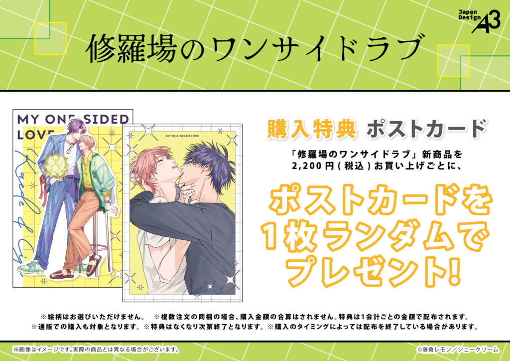『修羅場のワンサイドラブ』新商品を1会計2,200円(税込)お買い上げごとに、購入特典としてポストカード(全2種)をランダムで1枚プレゼント!(※特典はなくなり次第終了)