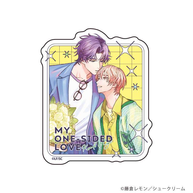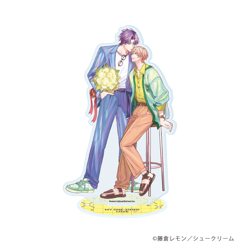 2人だけの世界をそっと見守れる大きさ約15cmのアクリルスタンド。描き下ろしイラストならではの小物使いやファッションにも、ぜひ注目してみてください!