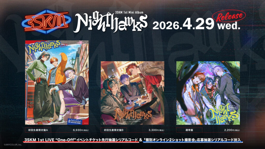 なお、2026年4月29日(水)に発売される1st Mini Album「Nighthawks」に、本公演の先行抽選シリアルコードが封入されることも決定。CD発売同日よりシリアル先行抽選の受付がスタートするそうなので、CDの購入&チケット申し込みをお忘れなく!
