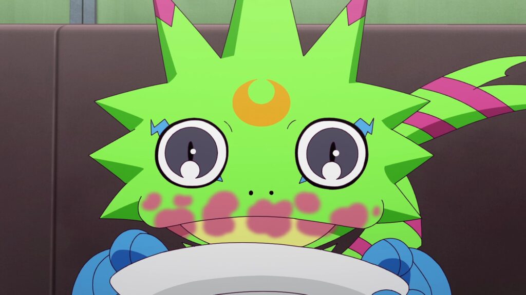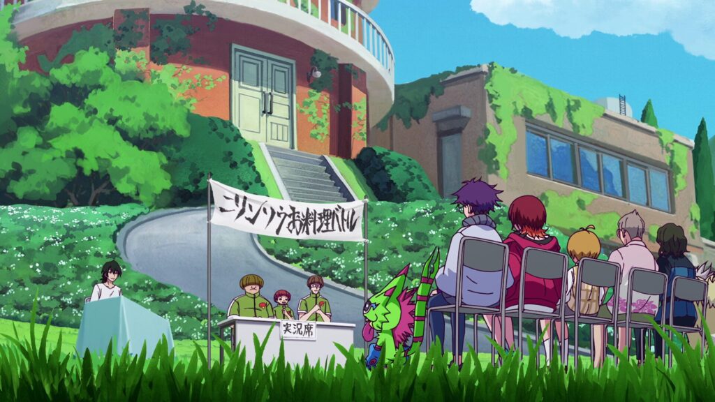 ニリンソウの前で倒れていたハルオミ。キョウに助けられ、コマンドラモンと再会を果たすが、衰弱したエリザモンとも遭遇してしまう。ハルオミのパートナーの座を争う2体はゲッコーモンの提案で、お料理バトルで決着をつけることになる。