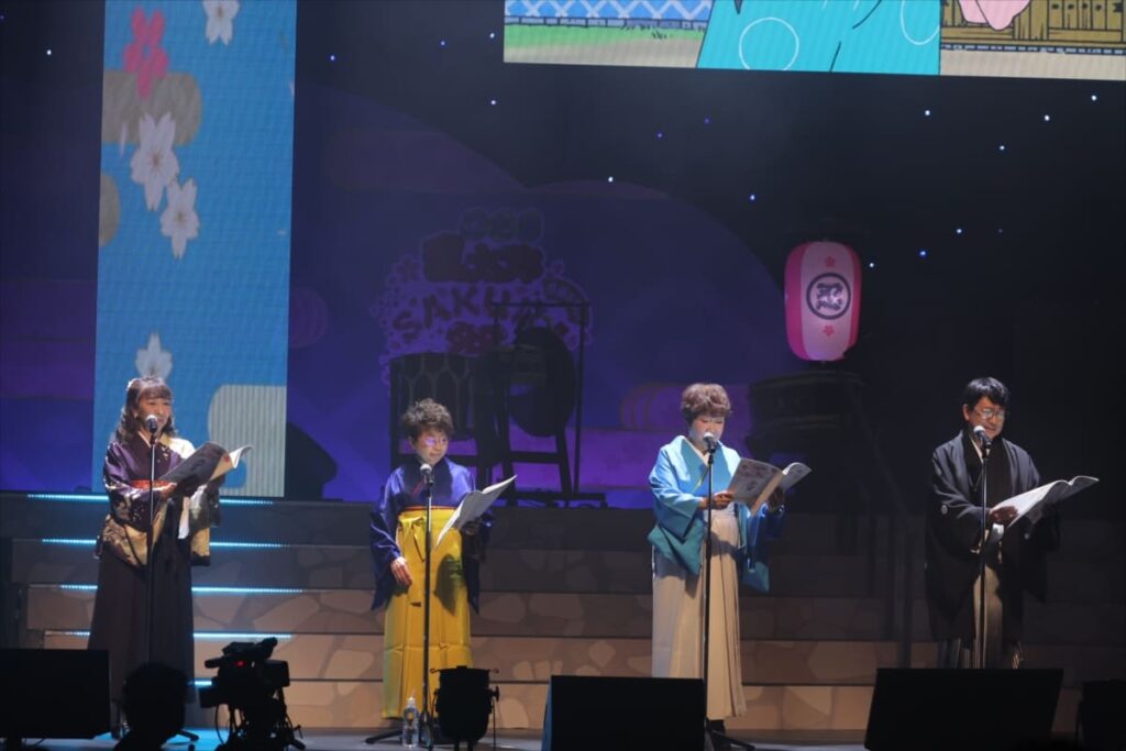 つづいては本イベントのメイン企画として、尼子騒兵衛がプロットを手がけ、アニメの脚本を務める石山優子がこの日のために書き下ろしたスペシャル朗読劇が披露されました。和楽器の生演奏が会場に響きわたる中、声優キャスト陣が織りなす朗読劇が展開され、会場は瞬く間に物語の世界へ。明るく・楽しく・ゆかいなやり取りに、観客の笑顔があふれ、特別なひとときとなりました。