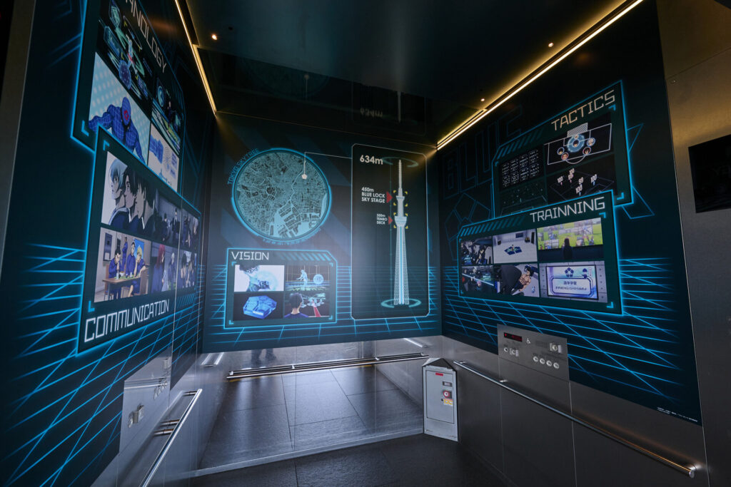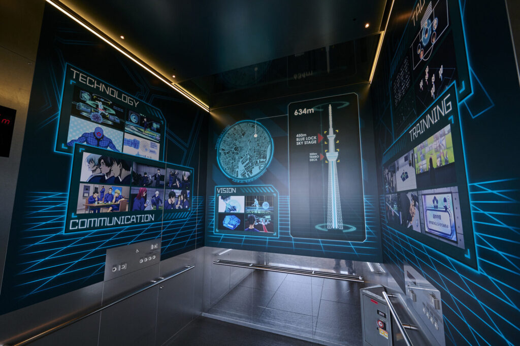『ブルーロック』の始まりを告げる絵心甚八の代表的なセリフ、「世界一のエゴイストでなければ、世界一のストライカーにはなれない」をアレンジした、スカイツリーらしさ全開の装飾で来場者を作品の世界へと導きます。