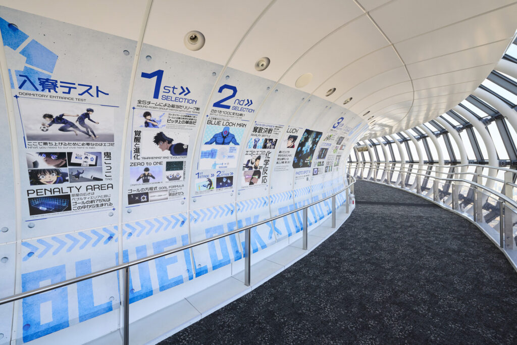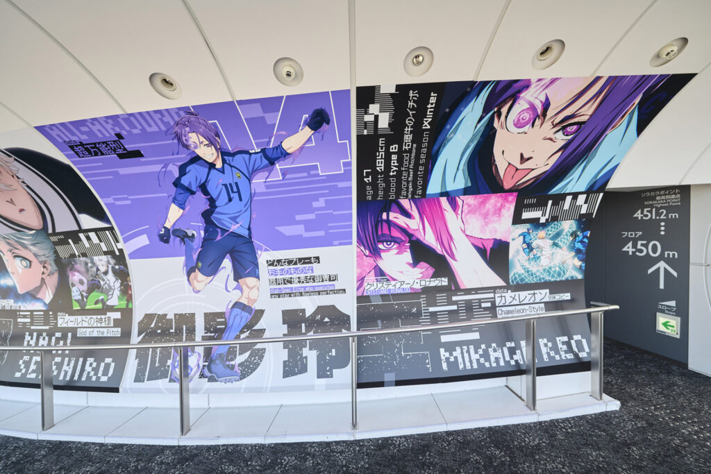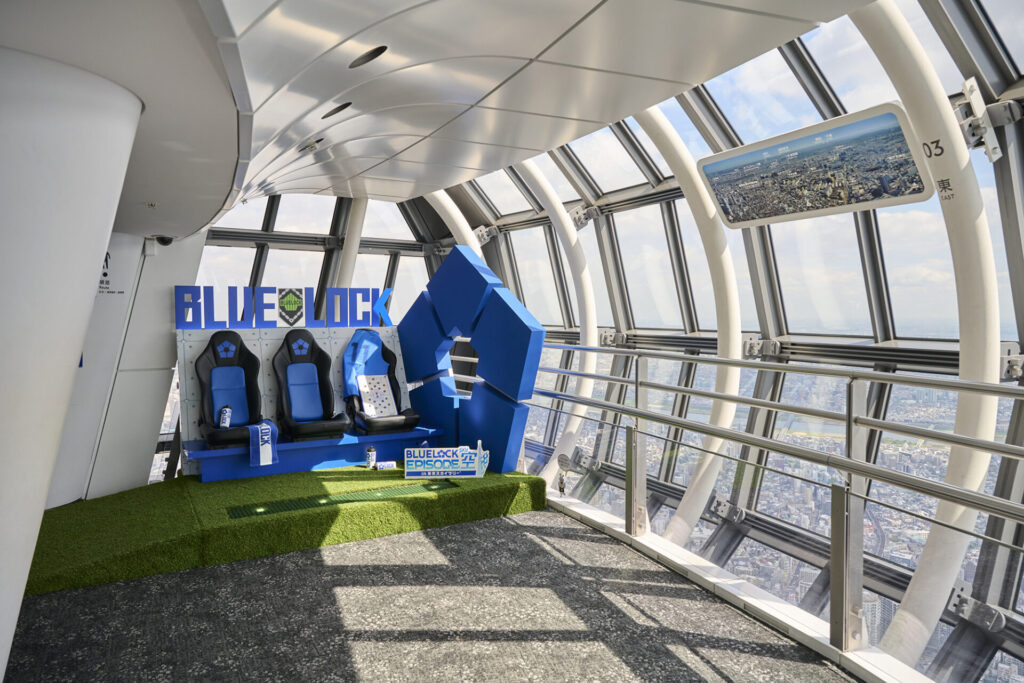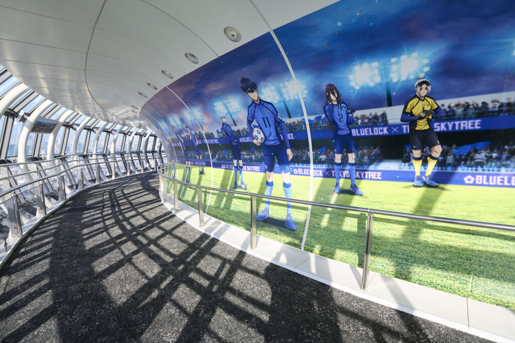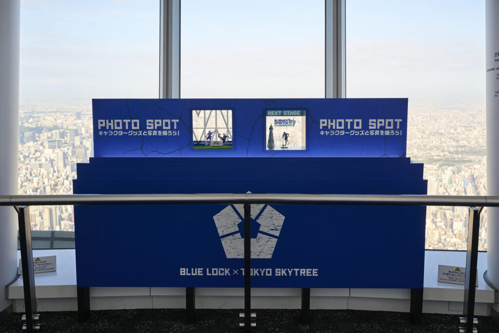 東京スカイツリーは、TVアニメ『ブルーロック』とのコラボイベント「BLUE LOCK EPISODE 空(SKY) in 東京スカイツリー(R)」を開催。450m地点にある、天望回廊を“ブルーロックスカイステージ”と名付け、『ブルーロック』の世界観に浸れる展示装飾やフォトスポットを設置しています。