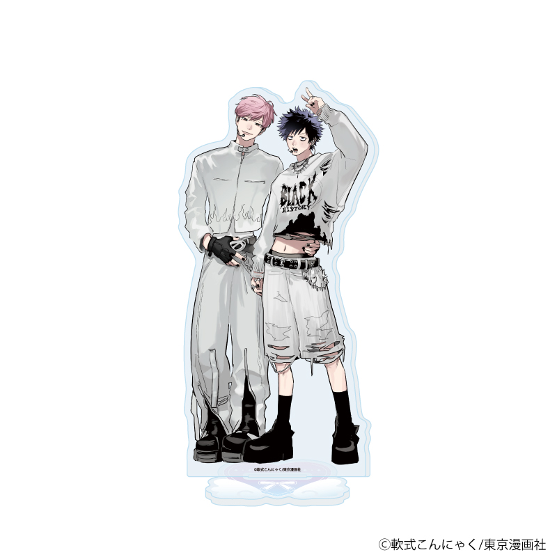 “アイドル”をテーマにした描き下ろしイラストでは、白を基調としたアイドル風衣装に身を包んだ推しカプの姿が♪ 本記事では、軟式こんにゃく先生が手掛ける『黒歴史によろしく』(MARBLE COMICS Cab/東京漫画社 刊)のグッズラインナップや、先生からの直筆コメントをご紹介します。