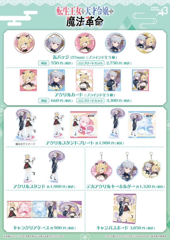 TVアニメ『転生王女と天才令嬢の魔法革命』の新作グッズが登場! 現在、通販サイト「eeo Store online」でお取り扱い中のほか、4月25日(土)からeeo Store 池袋本店で店頭販売もスタートします。