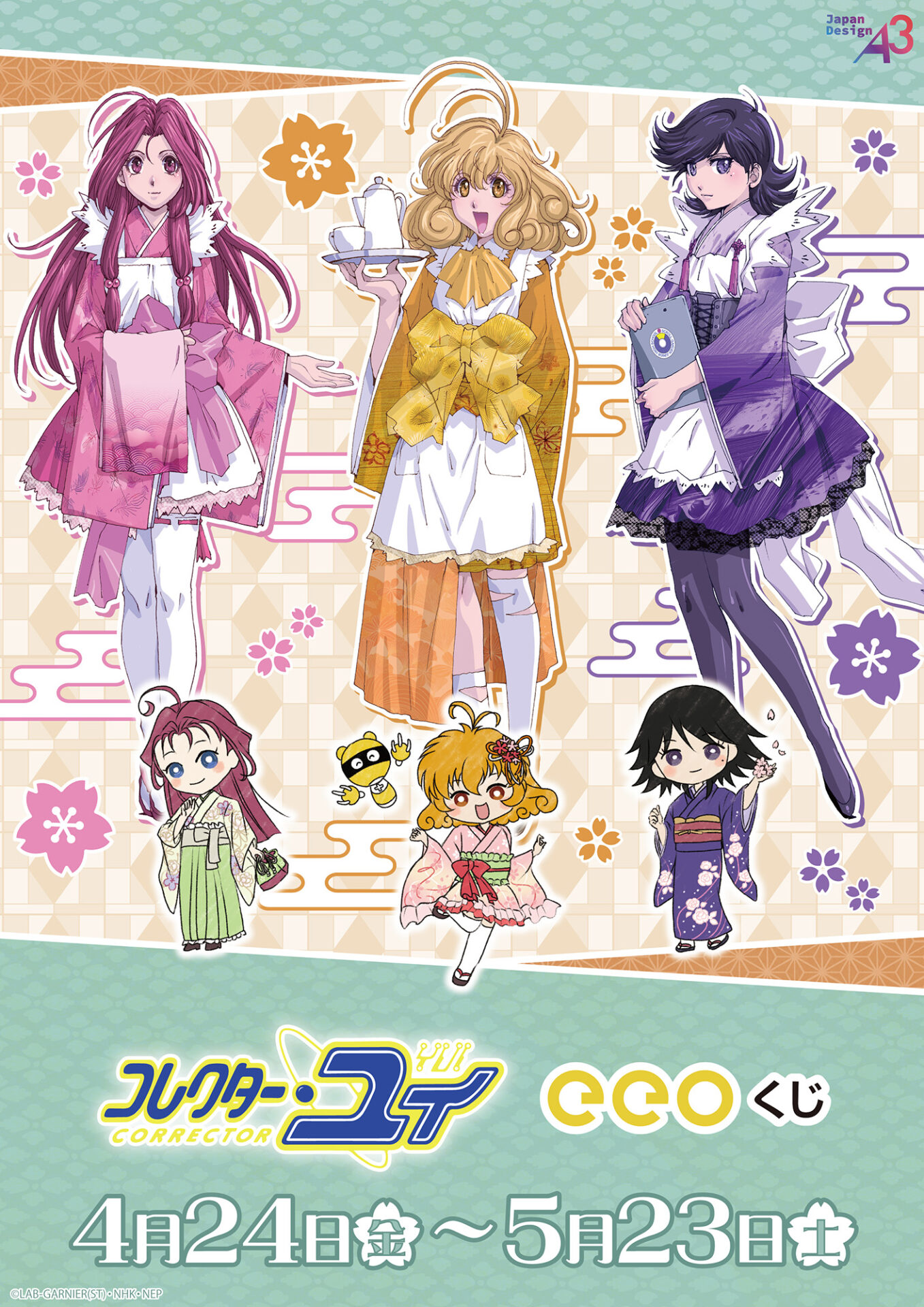 「eeoくじ」の景品には、描き下ろしイラストとA3オリジナルイラスト・GraffArt(グラフアート)を使用。ハイカラで可愛い“和装”がテーマのイラストです。