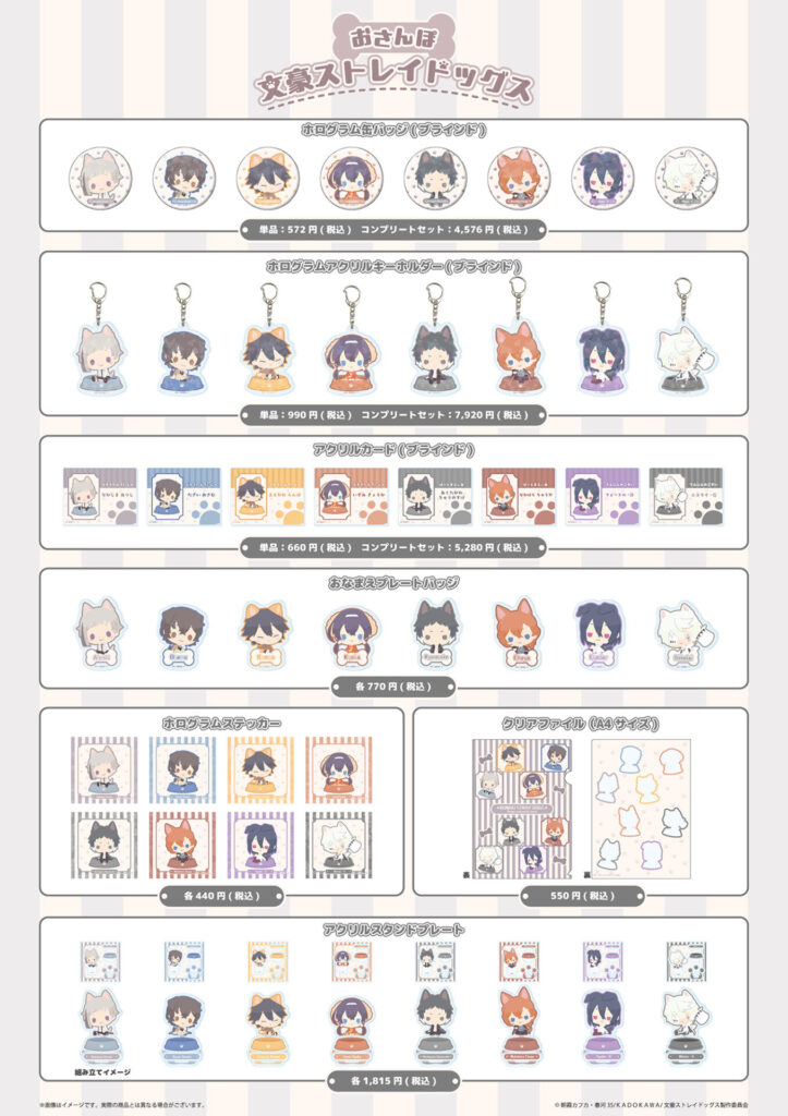 発売中の新作グッズは“おさんぽ文豪ストレイドッグス”と題したコンセプトで、どれもかわいいものばかり♪