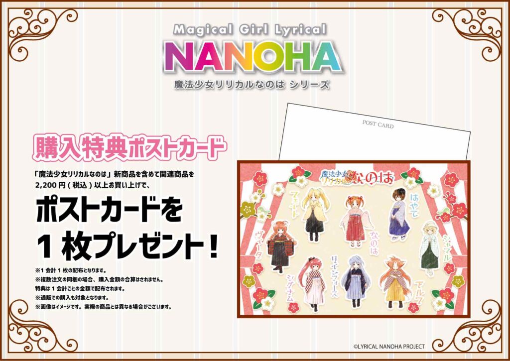 店舗・店頭受取予約・通販にて『魔法少女リリカルなのはシリーズ』の新商品を含めて2,200円(税込)以上お買い上げで、ポストカードを1枚プレゼント!