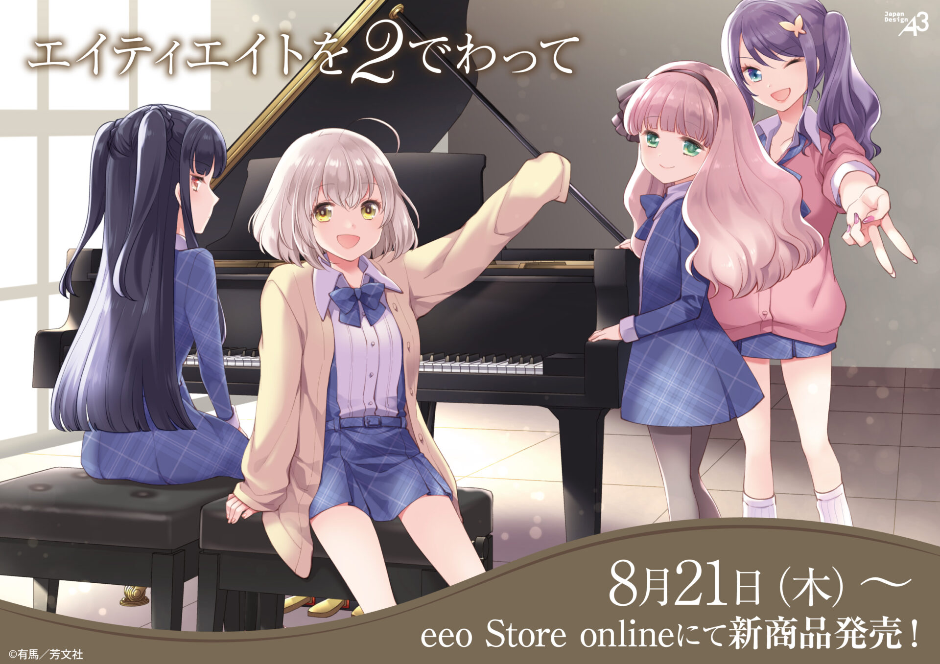 『エイティエイトを2でわって』から漫画イラストを使用した新商品が8月21日よりeeo Store onlineにて発売開始!