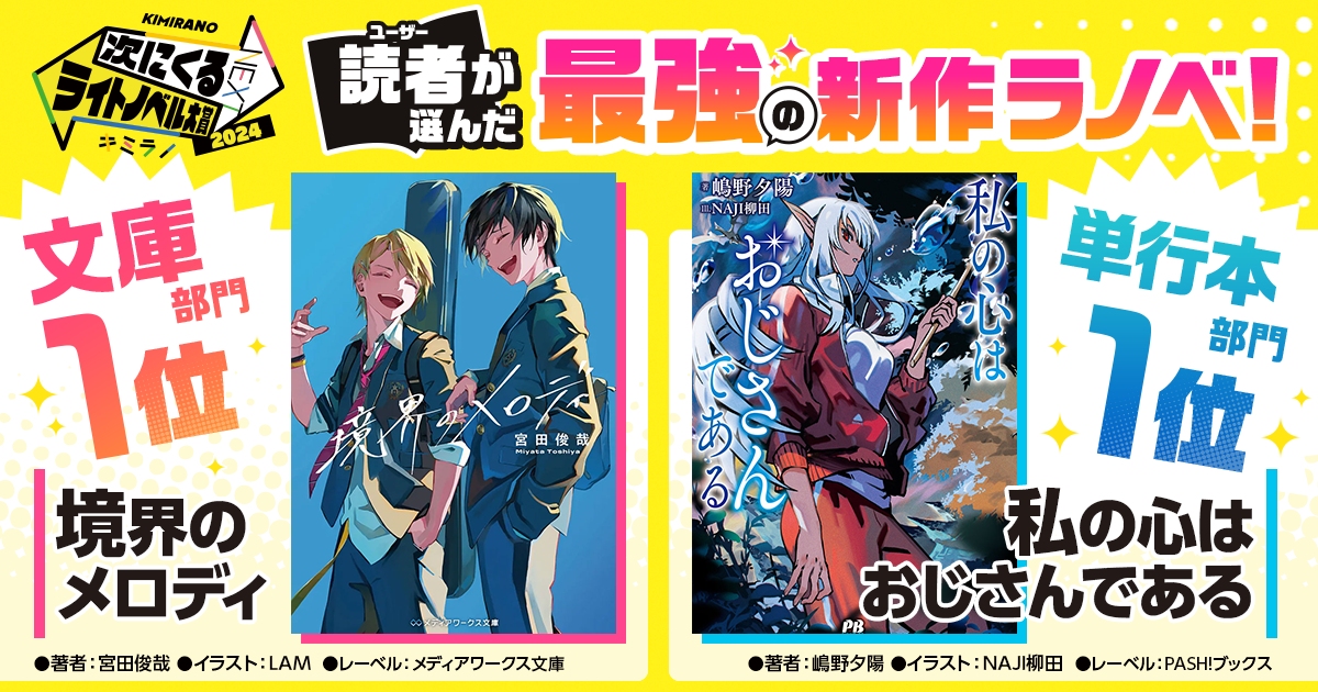 「次にくるライトノベル大賞2024」結果発表! 文庫部門&単行本部門の1位は『境界のメロディ』『私の心はおじさんである』に決定!