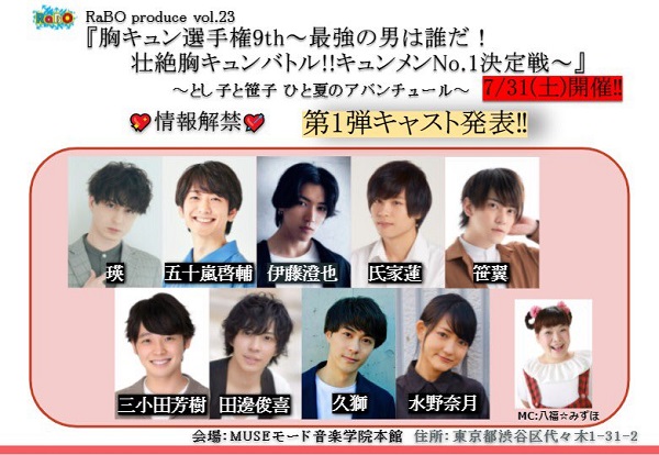胸キュン選手権 〜最強の男は誰だ!壮絶胸キュンバトル!!キュンメン No.1 決定戦~が7/31(土)に開催されます!