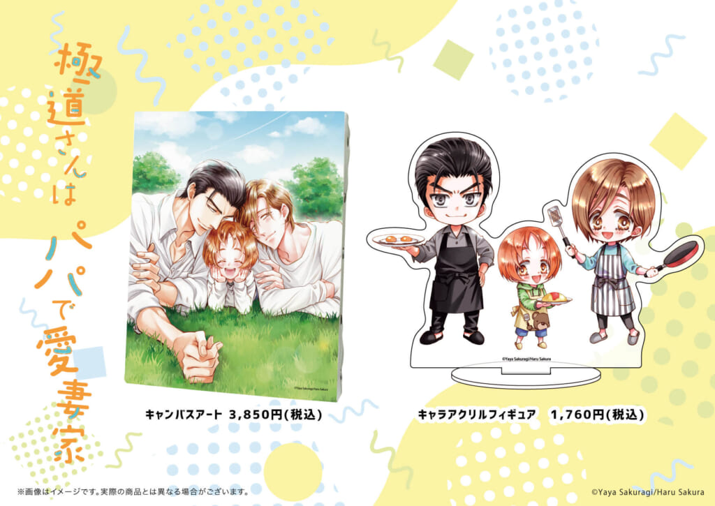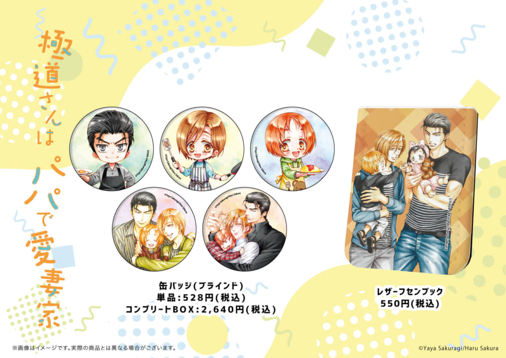 定番の缶バッジや、描き下ろしイラストを使用したキャラアクリルフィギュアなどのグッズが登場。