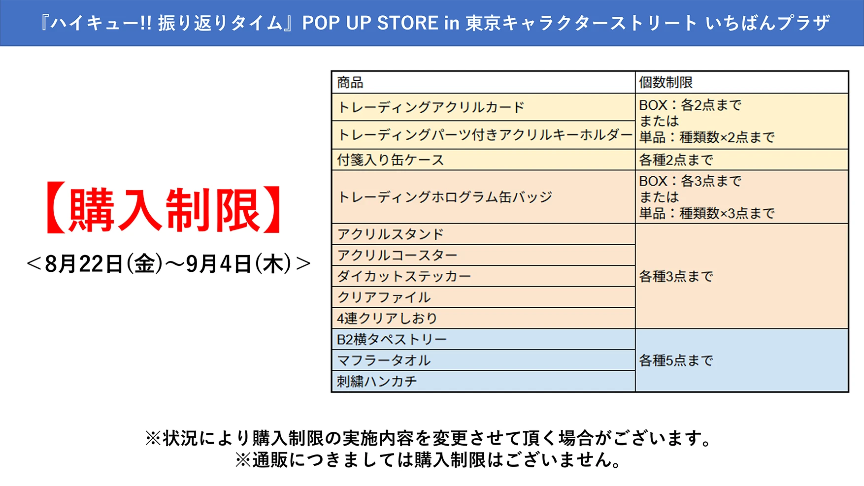 - 『ハイキュー!! 振り返りタイム』POP UP STORE