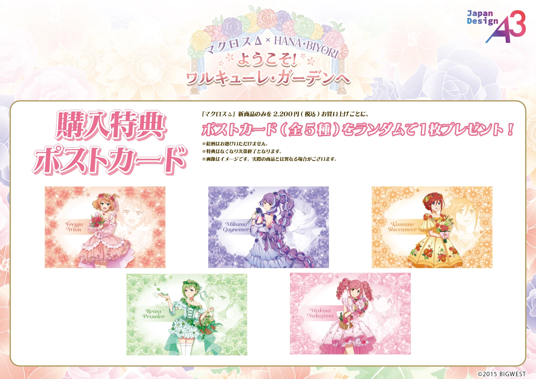 「マクロスΔ」コラボグッズを2,200円(税込)お買い上げごとに、ポストカード(全5種)をランダムで1枚プレゼント!