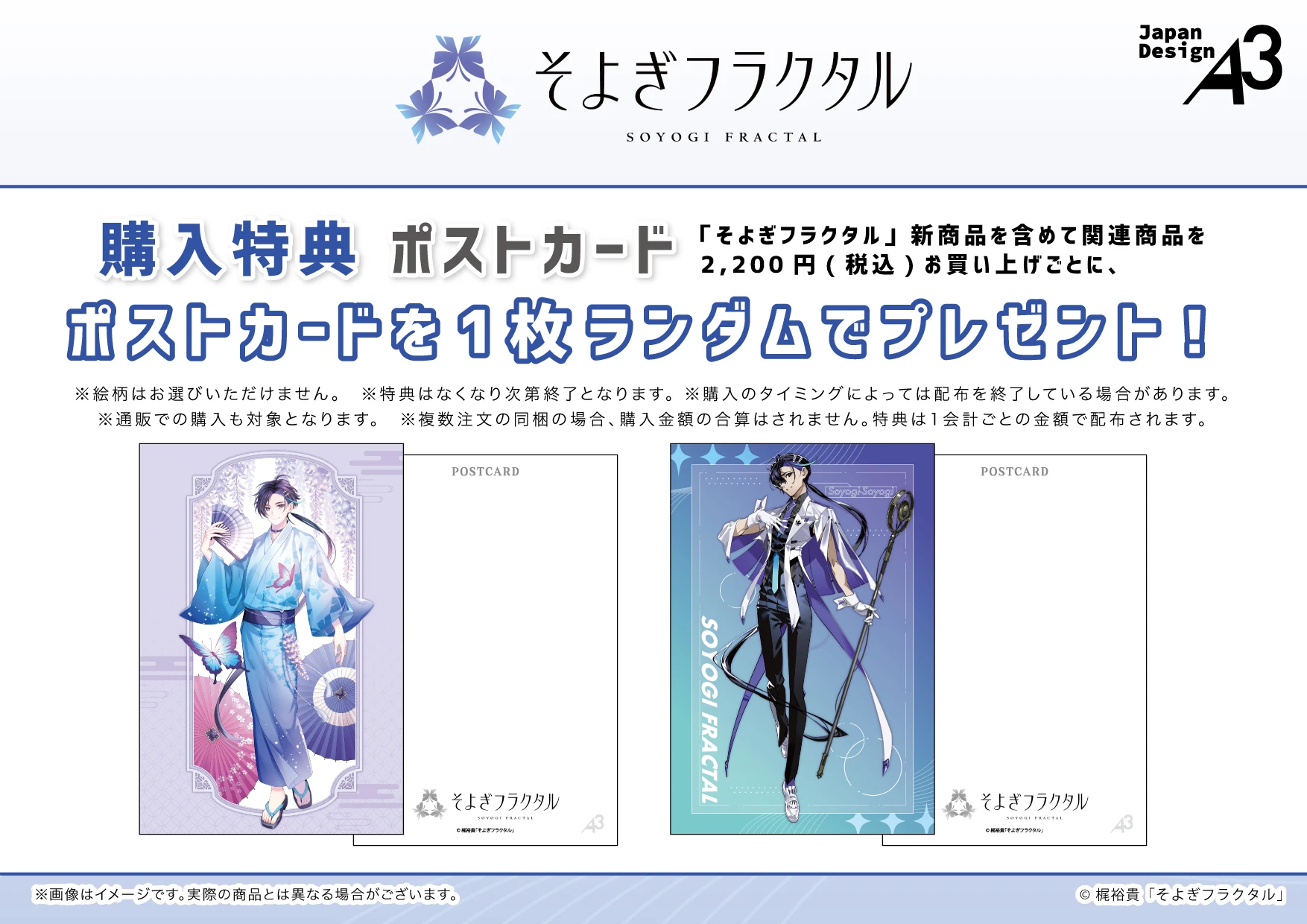 新商品を含めて関連商品を2,200円(税込)お買い上げごとに、ポストカードを1枚ランダムでプレゼント!