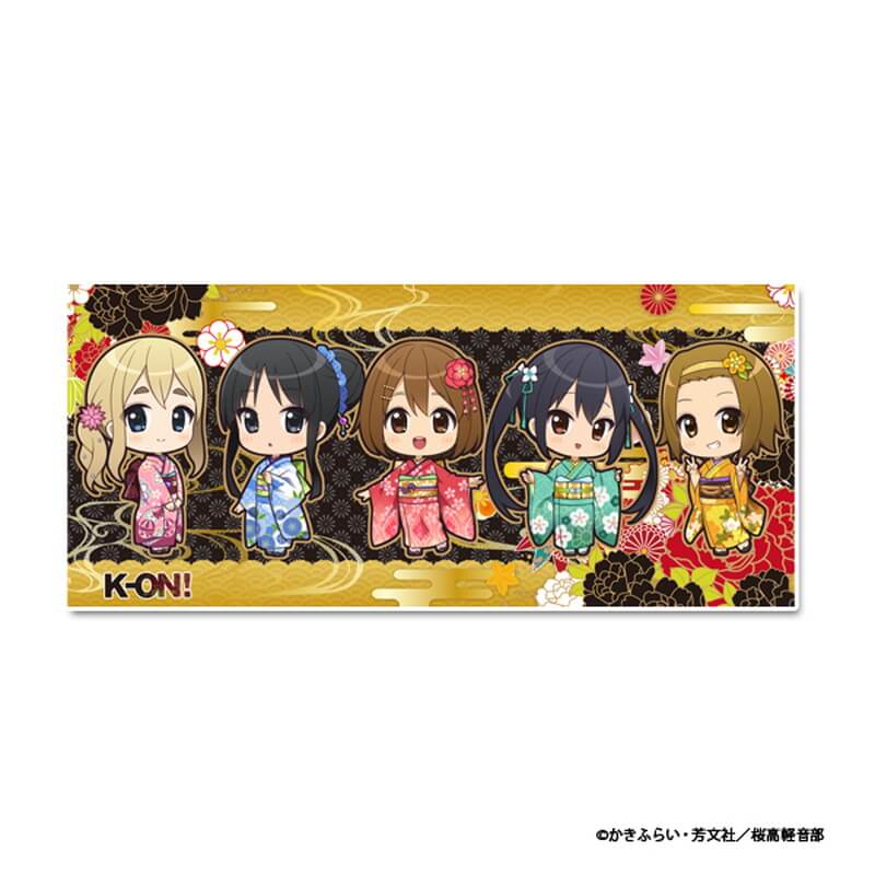 演芸大会にて浴衣で演奏した唯と梓の2人と、着物姿のメインキャラクター5人の可愛らしいデフォルメイラストを使用致しました。